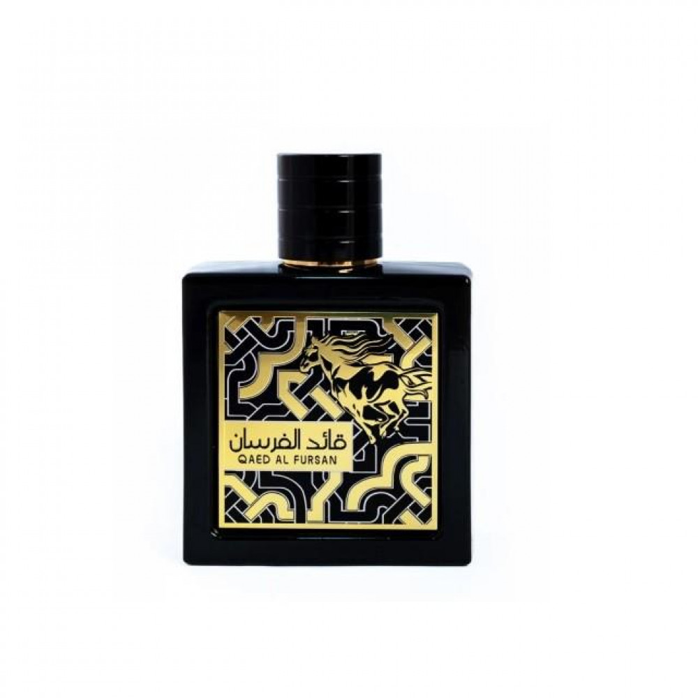Qaed Al Fursan Perfume / Eau De Parfum by Lattafa is an ethereal scent that opens up with fresh fruity notes to transform into woody-floral notes for an expressive and elegant fragrance. The black square bottle with gold engravings of wispy designs adds to the elegant allure.